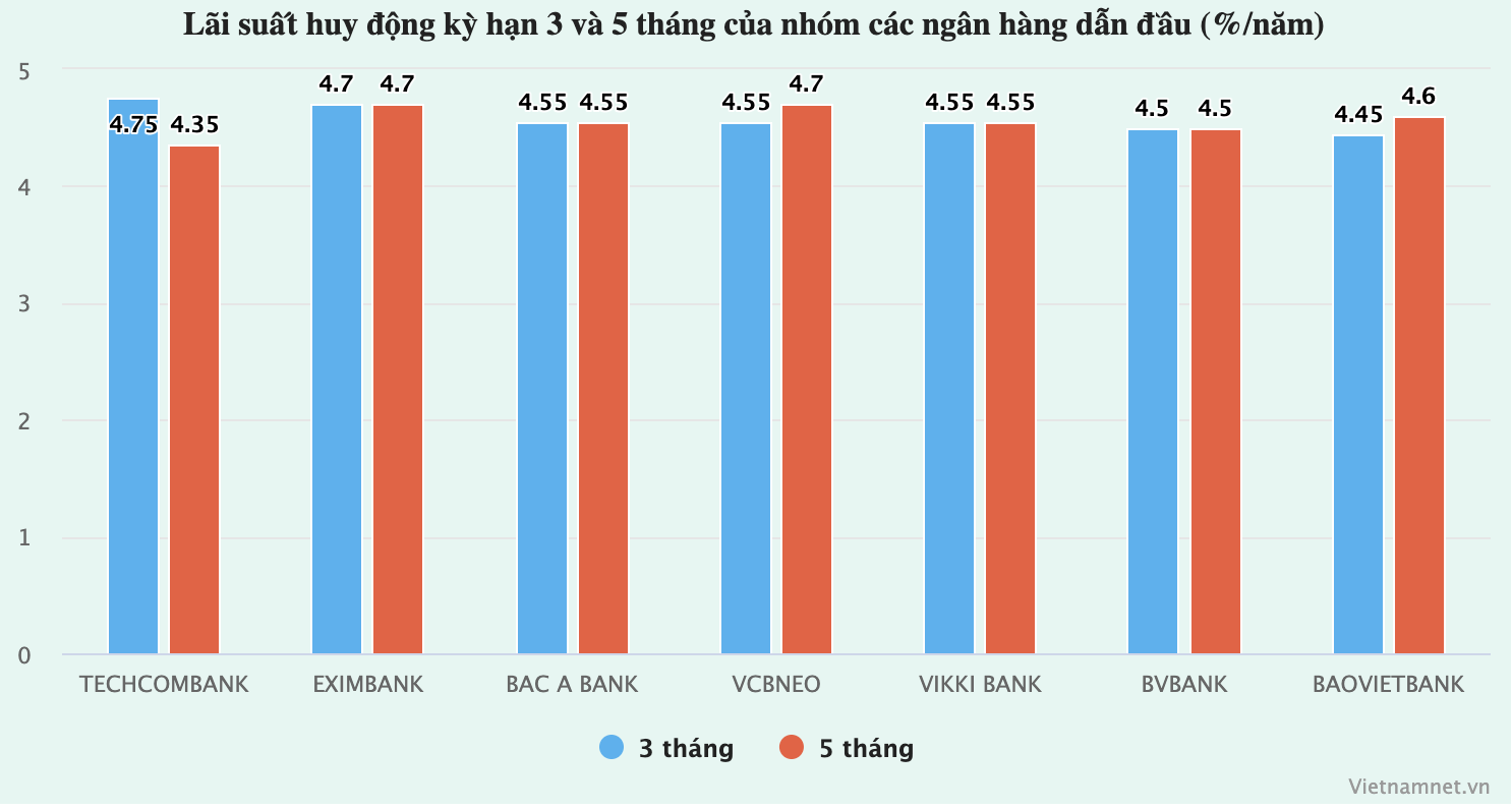 Lãi suất ngân hàng hôm nay 12/11/2025, lãi suất huy động kỳ hạn ngắn (dưới 6 tháng) đã đạt ngưỡng trần theo quy định của Ngân hàng Nhà nước (NHNN), tức 4,75%/năm.