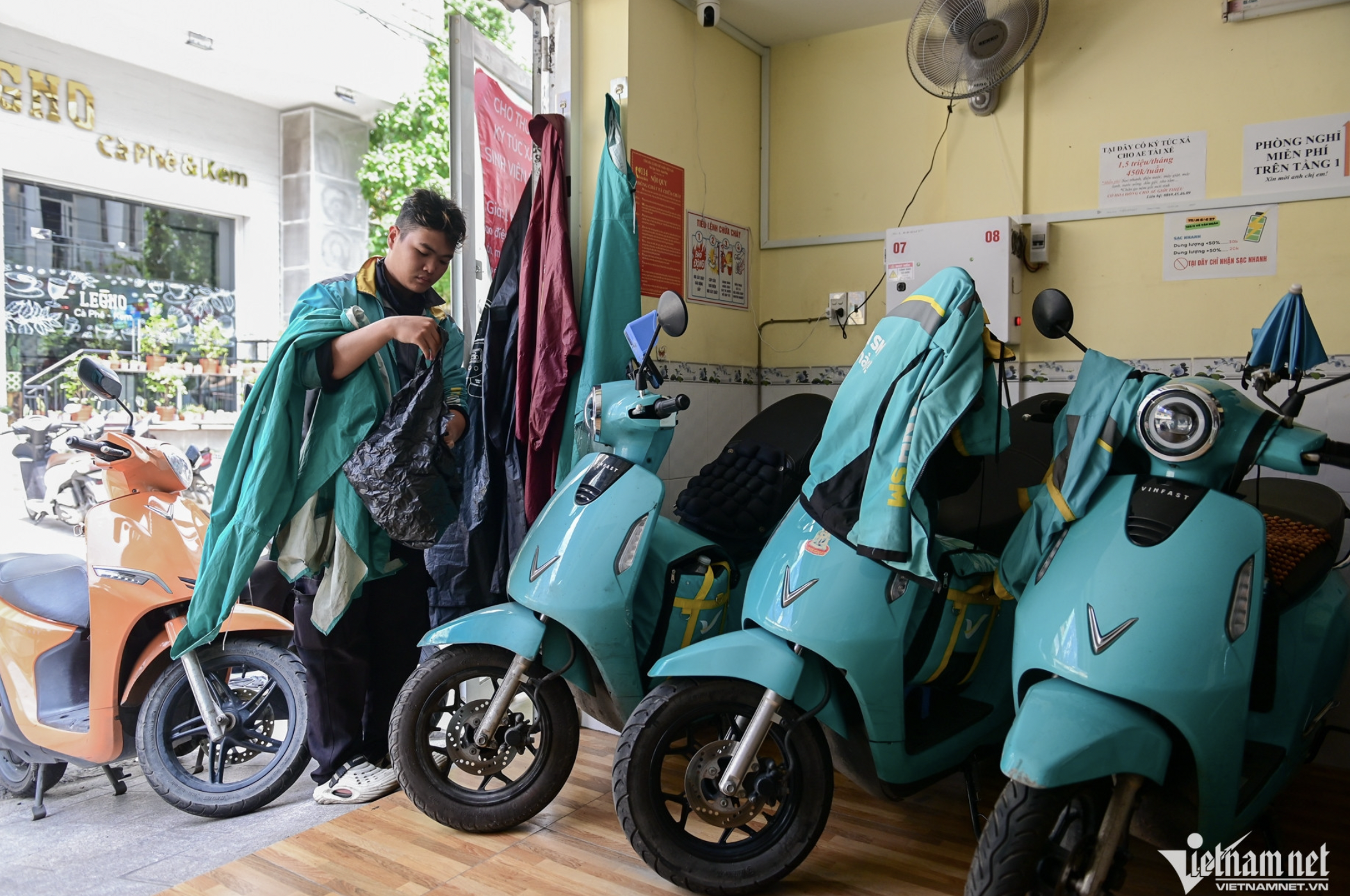 Một trạm sạc tại TPHCM trang bị bộ đàm để gọi tài xế khi xe đầy pin, tích hợp không gian nghỉ ngơi và tiện ích cơ bản, phục vụ nhu cầu ngày càng tăng của người chạy xe cô...