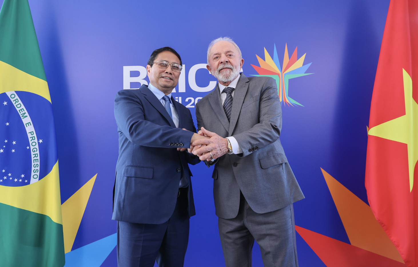 Ngày 7/7, nhân dịp dự Hội nghị Thượng đỉnh BRICS mở rộng tại Rio de Janeiro, Brazil, Thủ tướng Phạm Minh Chính đã gặp Thủ tướng Quốc vụ viện Trung Quốc Lý Cường.