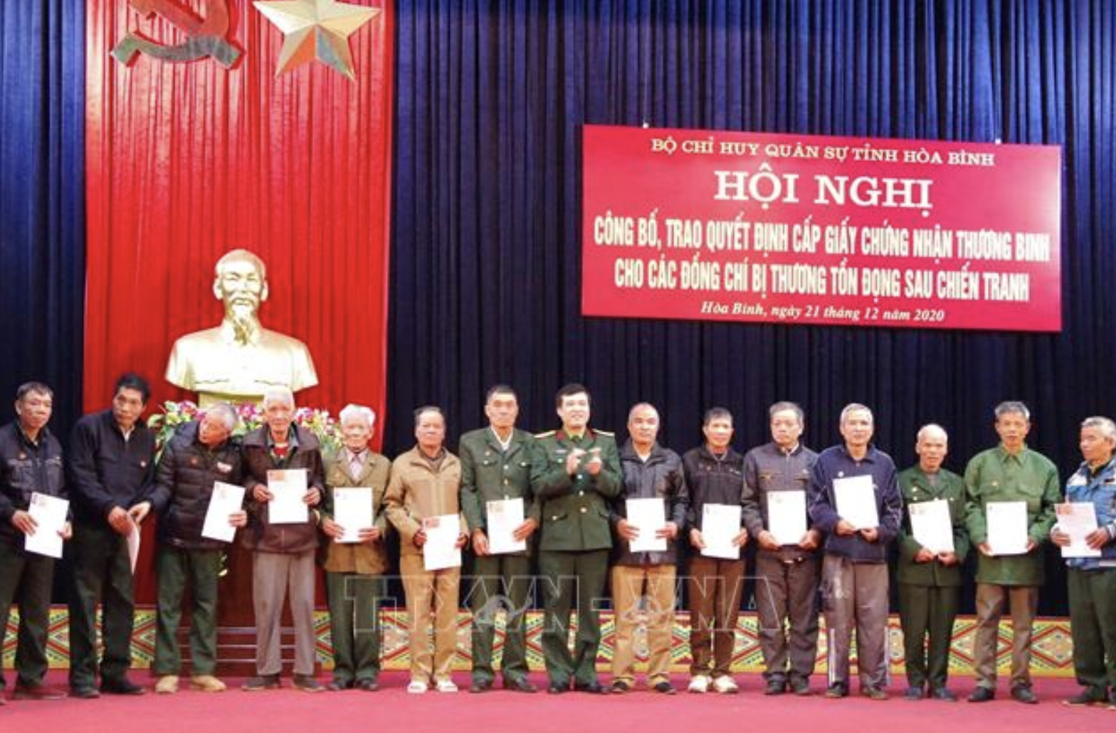 Vừa qua, Bộ Chỉ huy quân sự tỉnh Hòa Bình tổ chức Hội nghị công bố và trao Quyết định cấp giấy chứng nhận thương binh của Bộ Tư lệnh Quân khu 3 cho 53 cựu quân nhân.